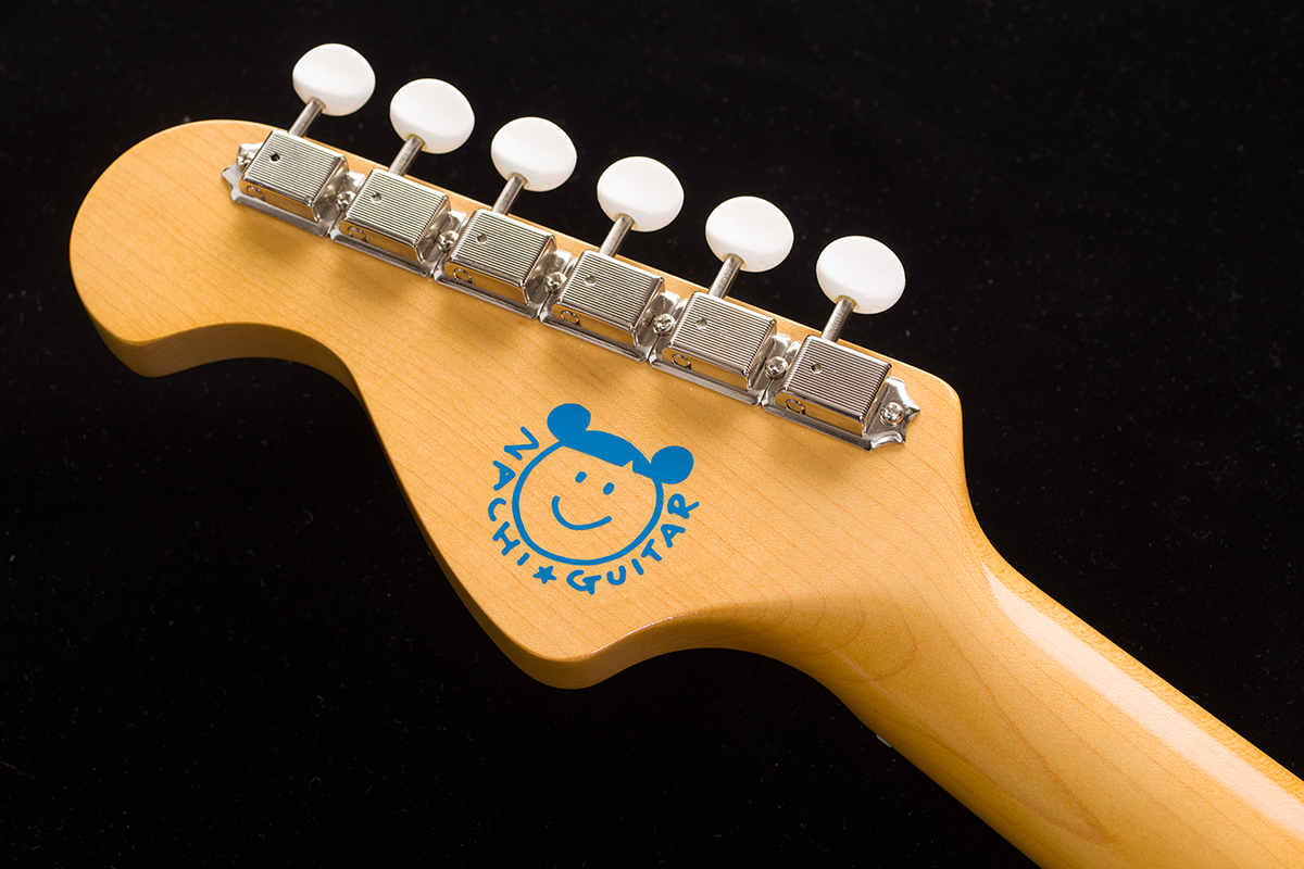 ヘッド裏には自身のデザインによる 「NACHI☆GUITAR」 のイラストロゴが施され、アーティストとしての個性やスタンスが楽器そのものにも反映されています。