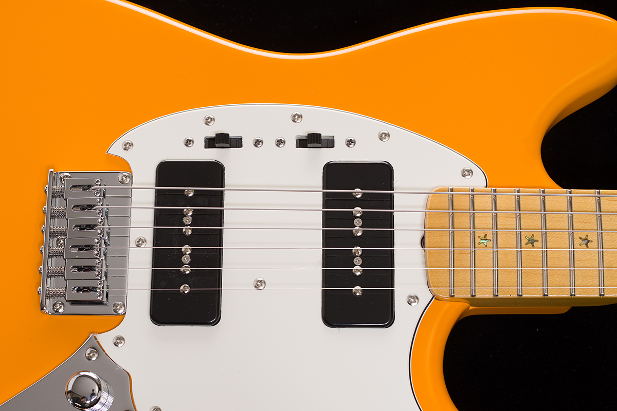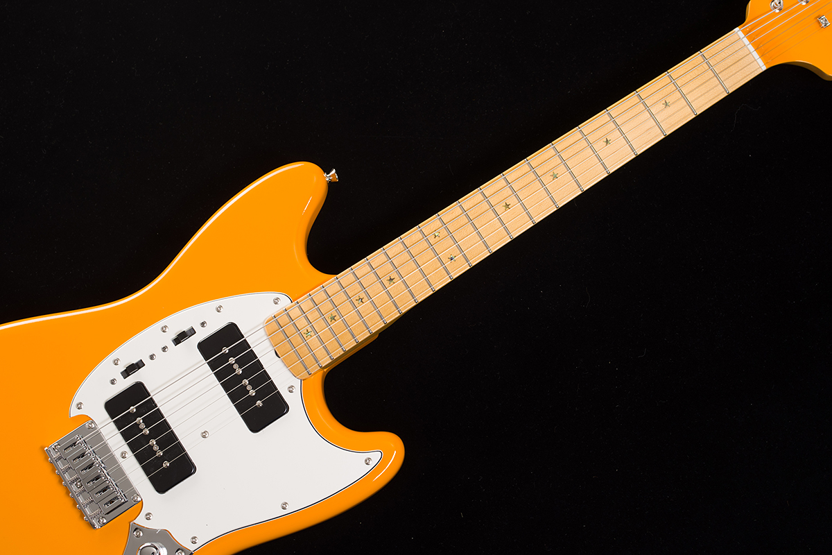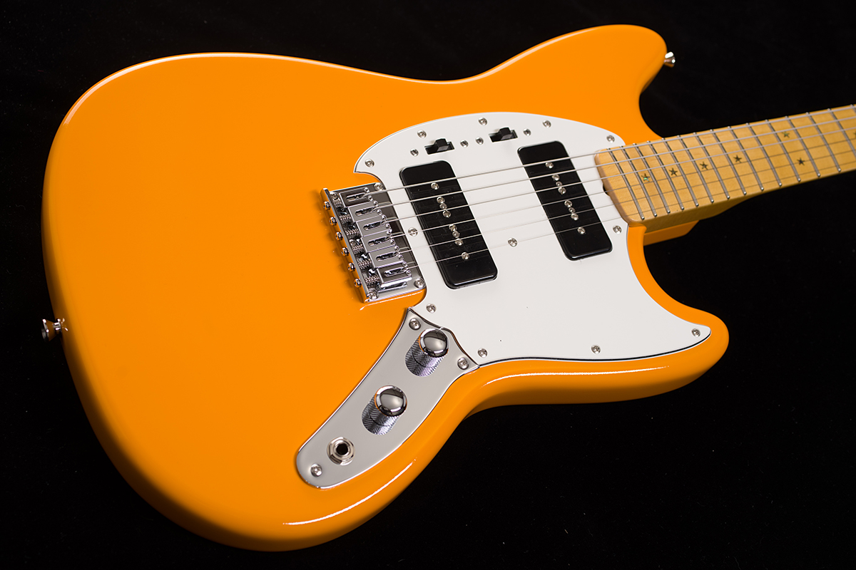 コンパクトなボディとショートスケールが生み出す軽快な弾き心地は、激しいライブでもストレスなくプレイでき、思い切りかき鳴らすロックスタイルと相性抜群。